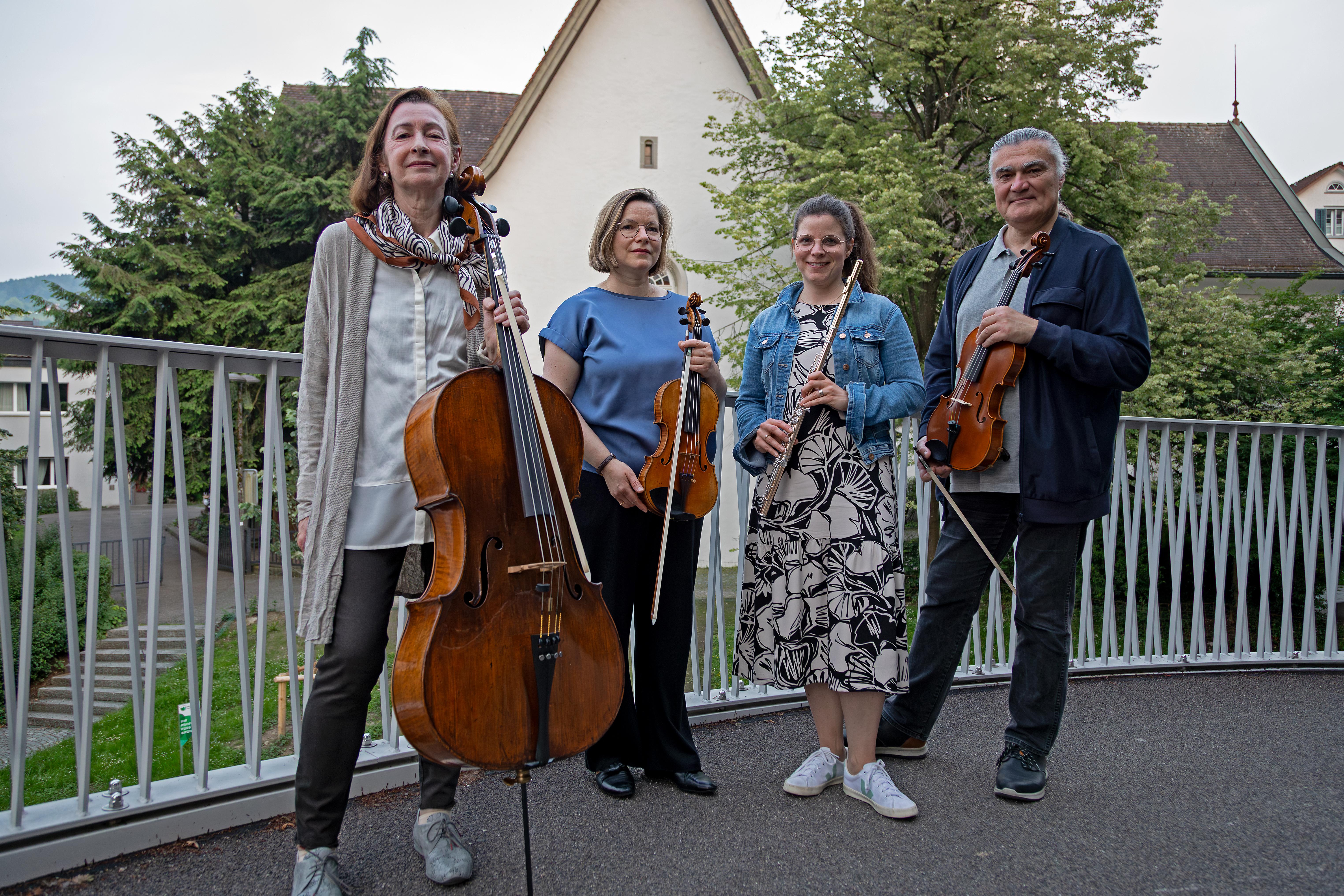 Vier Komponisten, vier Klangwelten. Nadine Hörler Querflöte, Pascale Krayenbühl Violine, Robert Bokor Viola und Maria Schweizer Violoncello gründeten im Frühling 2025 das Acquarello Quartett. Vier Komponisten, vier Klangwelten – verbunden durch eine Besetzung mit vier Instrumenten, die Leichtigkeit und Transparenz mit Ausdruckstiefe vereint: das Flötenquartett. Die Ouvertüre zur Oper «die Zauberflöte» eröffnet das Konzert. Es erklingen vier ausgewählte Quartette verbunden durch persönliche Freundschaften der jeweiligen Komponisten sowie durch den nachhaltigen und tiefgreifenden Einfluss der Musik Mozarts.